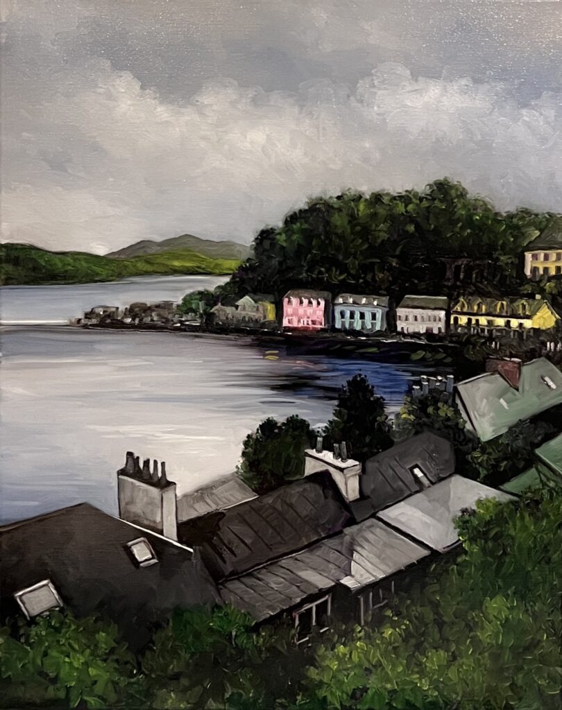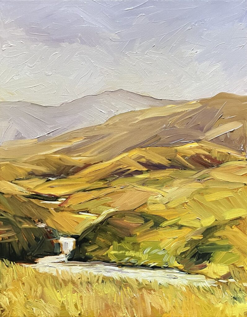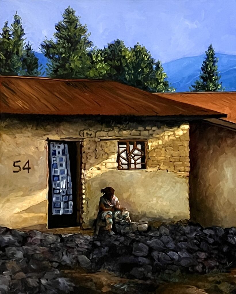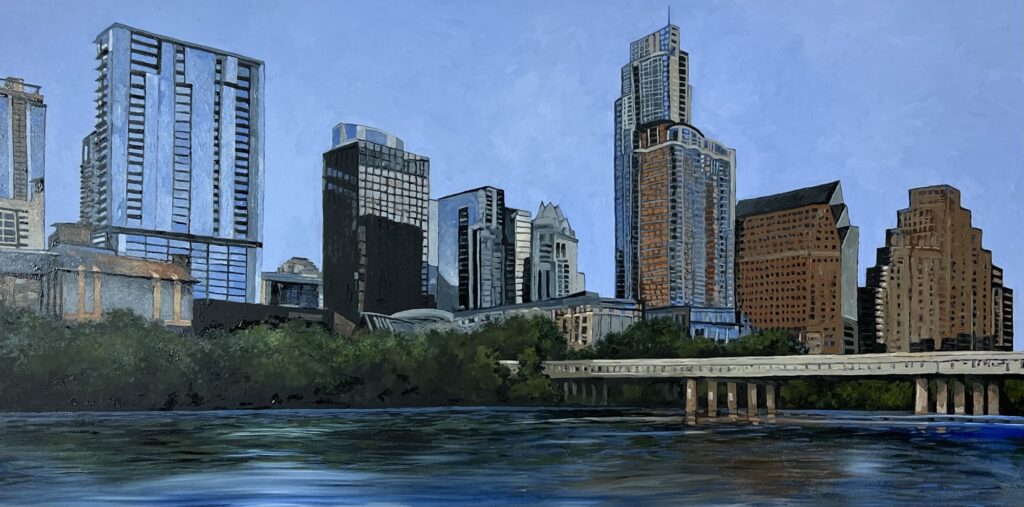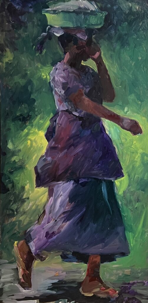 Devil’s Tower (10×8”) $250Colorado River (16×24”) $800Wimberly Creek (16×16”) $700Barton Springs 14×11”) $400Ancient Pottery (12×12”) $400Pears and Grapes (12×12”) $400Leaf (10×8”) $250Turtles On Town Lake (11×14”) $400Rwanda Home (30×24”) $1200Laundry Day In Tangiers (16×22”) $775Village In Russia (18×30”) $900Prickly Pear (30×22”) $1000Sewing Machine In Rwanda (30×24”) $1200Portree, Isle of Skye (20×16”) $750Blue House In Cuba (10×20”) $500Twa Woman In Rwanda (20×16”) $750Sewing Co-op Courtyard In Rwanda (14×11”) $400Moore-Hancock Farmstead (14×11”) $400Austin Skyline (24×48”) $1850Woman Walking In Rwanda (48×24”) $1850Garden Bounty (12×12”) $400Fiestaware Pitcher (14×11”) $400Isle of Skye (14×11”) $400Scotland (24×24”) $950Bluebonnets (14×11”) $400Scottish Robin (14×11”) $400Vital Spark, Inverary (20×16”) $750Jordan Pond, Acadia National Park (10×8”) $250Glass Jars (16×20”) $750