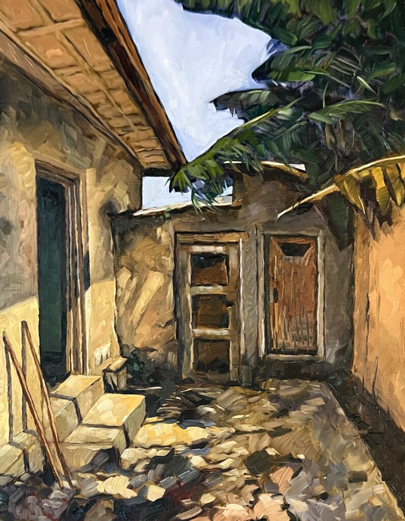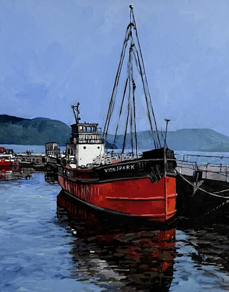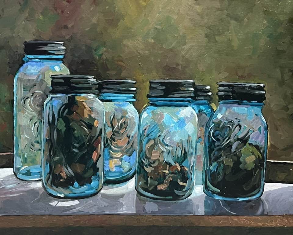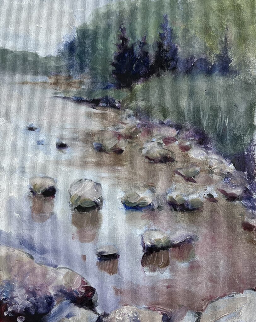 Devil’s Tower (10×8”) $250Colorado River (16×24”) $800Wimberly Creek (16×16”) $700Barton Springs 14×11”) $400Ancient Pottery (12×12”) $400Pears and Grapes (12×12”) $400Leaf (10×8”) $250Turtles On Town Lake (11×14”) $400Rwanda Home (30×24”) $1200Laundry Day In Tangiers (16×22”) $775Village In Russia (18×30”) $900Prickly Pear (30×22”) $1000Sewing Machine In Rwanda (30×24”) $1200Portree, Isle of Skye (20×16”) $750Blue House In Cuba (10×20”) $500Twa Woman In Rwanda (20×16”) $750Sewing Co-op Courtyard In Rwanda (14×11”) $400Moore-Hancock Farmstead (14×11”) $400Austin Skyline (24×48”) $1850Woman Walking In Rwanda (48×24”) $1850Garden Bounty (12×12”) $400Fiestaware Pitcher (14×11”) $400Isle of Skye (14×11”) $400Scotland (24×24”) $950Bluebonnets (14×11”) $400Scottish Robin (14×11”) $400Vital Spark, Inverary (20×16”) $750Jordan Pond, Acadia National Park (10×8”) $250Glass Jars (16×20”) $750